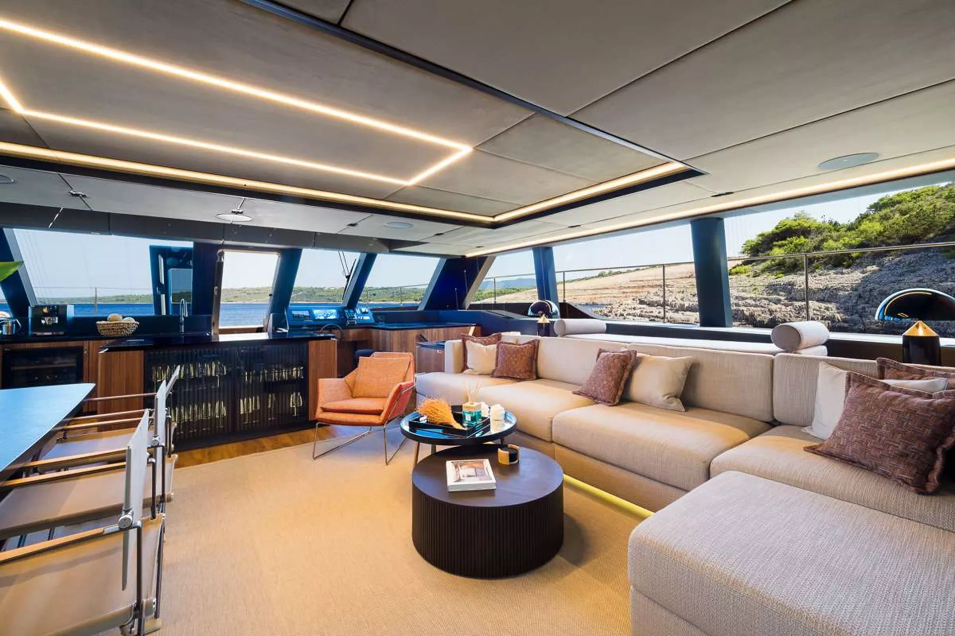 Vast, open living areas provide the ideal retreat — from stylish interiors bathed in natural light to expansive outdoor spaces where you can lounge, dine and explore. Whether it’s on the bow terrace, the aft cockpit or the generous flybridge, AMBER ONE creates the perfect setting for both relaxing and entertaining.