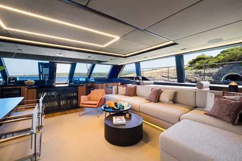 Embark on an unforgettable journey aboard the exquisite 70 Sunreef Power AMBER ONE, available for charter in Croatia from May to November. This 70-foot luxury power catamaran blends modern design, outstanding performance, and advanced technology, delivering an unparalleled experience on the water. Featuring a sleek dark brown hull and a spacious, elegantly appointed interior, AMBER ONE is the ideal choice for those seeking both adventure and tranquility while exploring the breathtaking Adriatic coast.