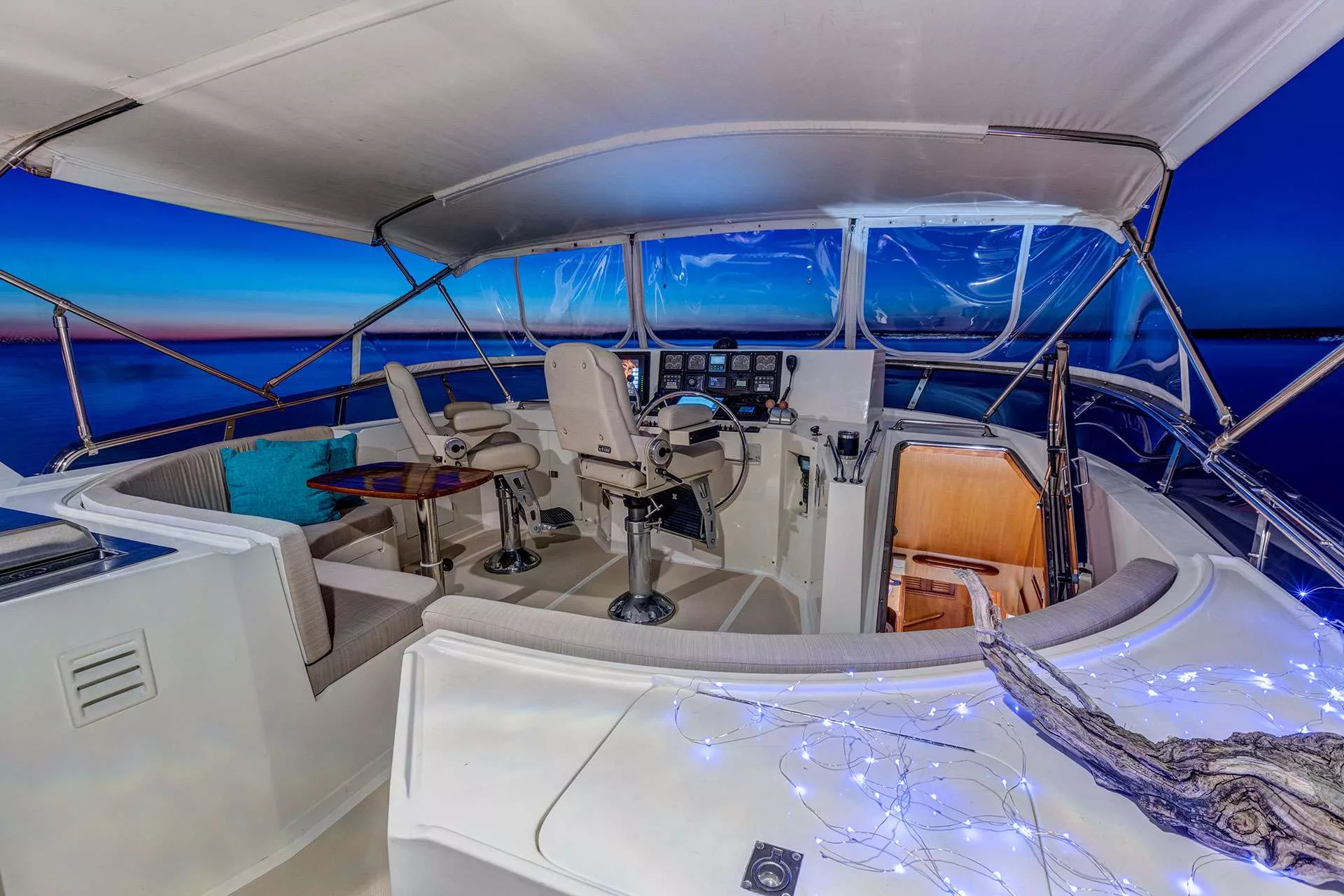 Whether you charter for the day, stay overnight at the dock, or embark on a week-long coastal adventure, Timeless offers unparalleled amenities packed into its 62-foot length overall. Her vast open salon, covered aft deck, and expansive flybridge provide an abundance of space for relaxation and entertainment, while the well-appointed cabins below ensure a comfortable and restful stay.