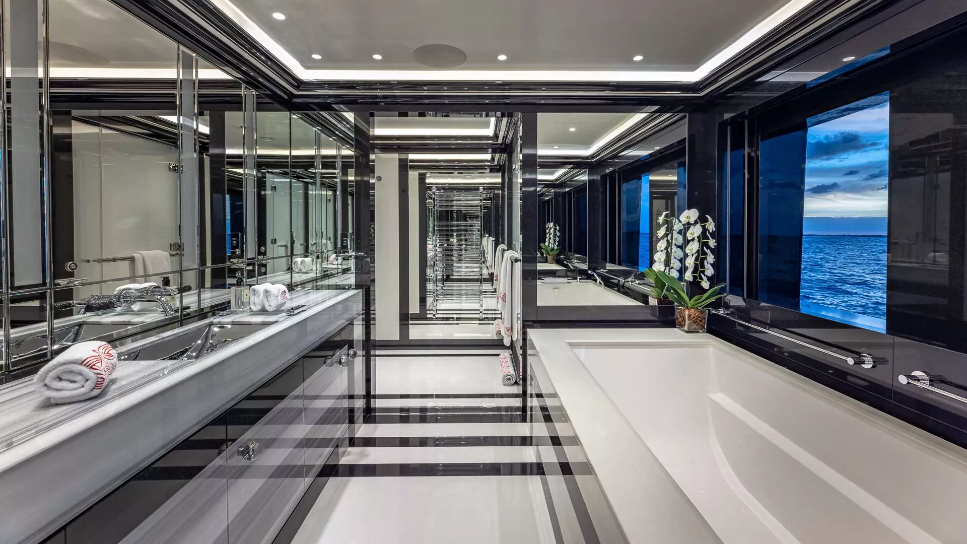 - Full beam master suite with a private balcony (on starboard) . The balcony comes with an air curtain to keep the interior spaces cool, whilst having the balcony open to the sea.