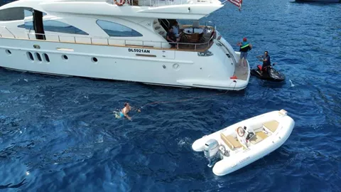 With a spacious flybridge this yacht can sure accommodate a large group, sit back and relax in style.