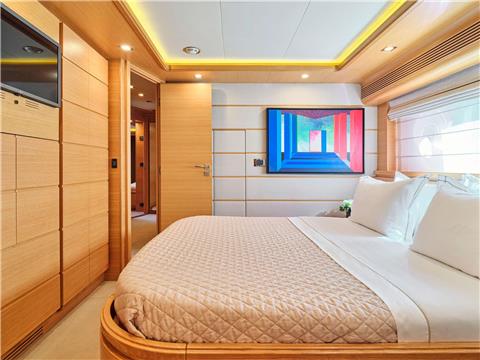 Master Cabin on the main deck with king size bed. Walk-in closet, desk, safe. En-suite facilities.
