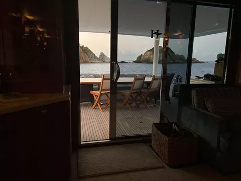 The aft deck and flybridge offer ample space for entertaining, relaxing and dining. CynderElla’s low draft makes her ideal for cruising shallow bays and coves, offering access to hidden gems along the coastline.