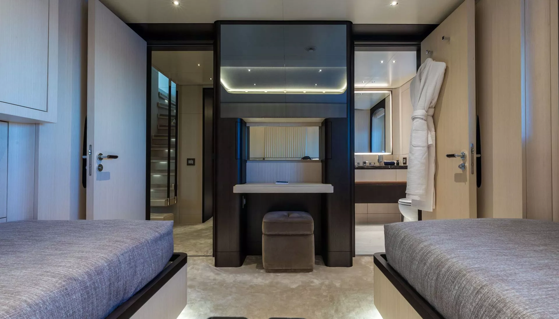 1x Master suite with a King Bed, dressing room and separate Master office on the Main Deck