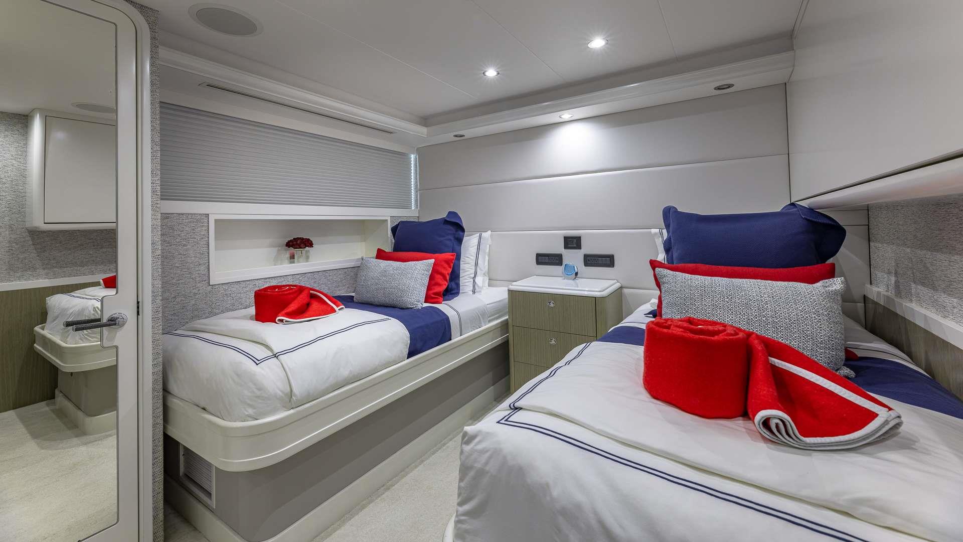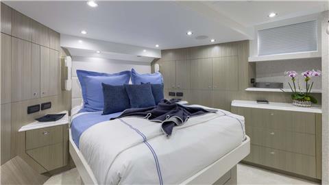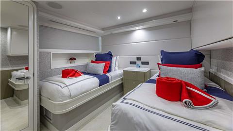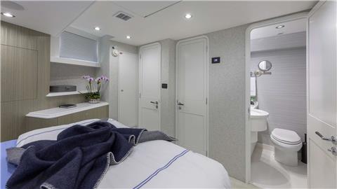 Port Guest Suite: Accommodating twin beds plus a pullman berth (which can be combined to create a king), this suite also features a wardrobe locker, en suite shower, and a 32" Samsung Flat Screen Television with smart tablet control.
