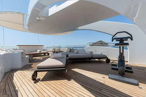 Rising to the upper deck, guests will find an additional huge saloon equipped with sofas and al fresco lounge and dining area.