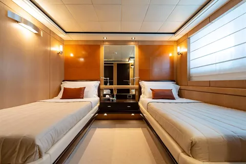 The yacht boasts a thoughtfully designed night layout, accomodating up to 12 guests in 6 exquisite cabins.