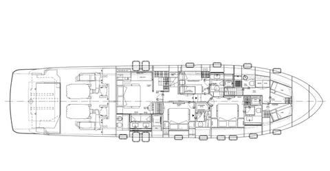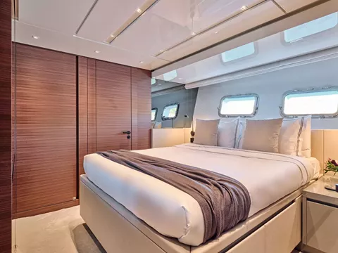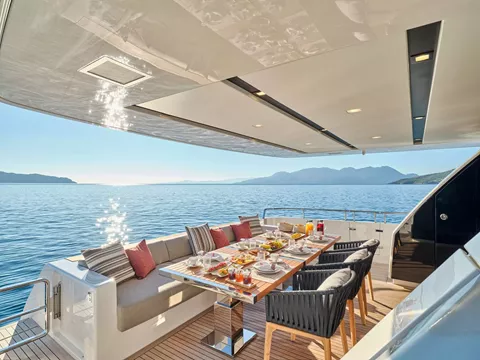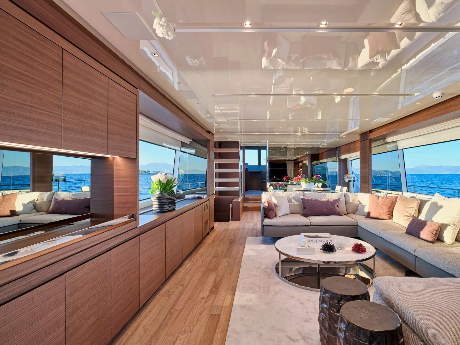 On the sundeck, a sleek hardtop casts soft shade over long, languid moments, while her full stabilization system transforms every passage into pure serenity. A generous collection of amenities and water toys invites guests to slip effortlessly between relaxation and adventure, from sun-drenched afternoons to playful dives into the blue.