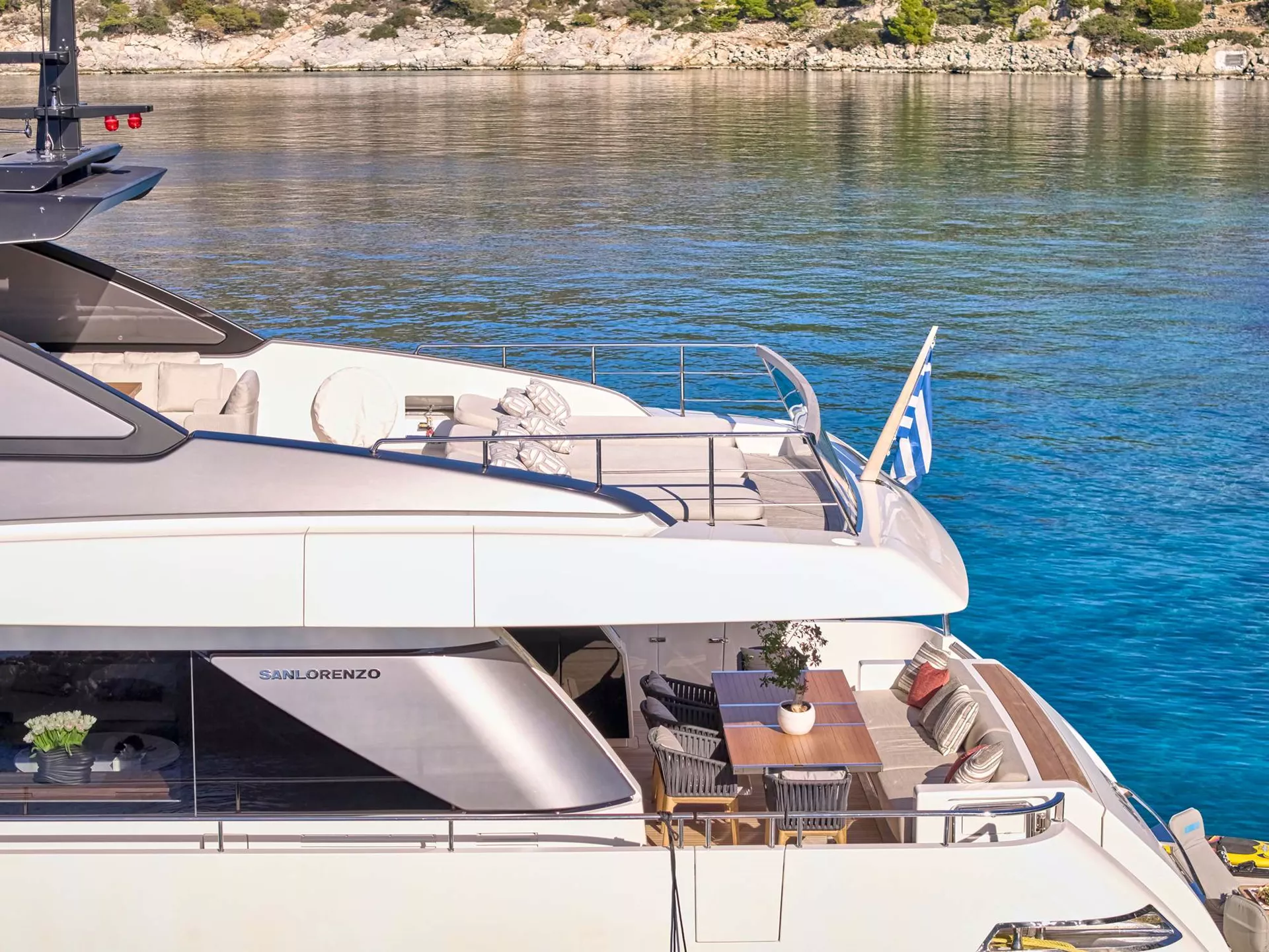 Introducing "AKASTI," the youngest yacht in her category, newly launched by Sanlorenzo in 2024 and now gliding through the luminous waters of Greece. She carries the shipyard’s unmistakable artistry: clean lines, quiet confidence, and a sense of movement even at rest.