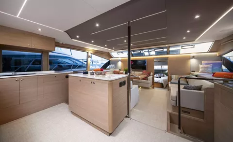 • Open bar area connecting social areas between aft cockpit and salon/galley