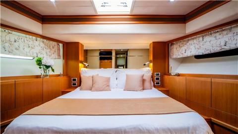 MASTER STATEROOM - KING (190x170cm). Shower, double sink. Large walk-in closet. Vanity. Safe. LCD TV, CD and DVD player, lounger