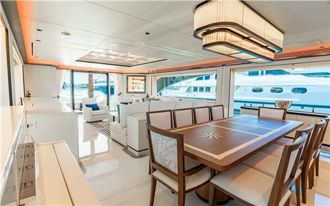 Below deck are 3 guest staterooms, comprised of a full beam large VIP suite which could serve as a 2nd Master and 2 Queen staterooms. All ensuite with showers and privatized toilets.