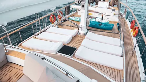 Price inclusive of all running expenses of the yacht, crew’s wages, fuel for an average of 4 hours cruising per day, ship’s laundry, free use of onboard water sports and recreational equipment, all taxes and harbour (public town quays) expenses.
