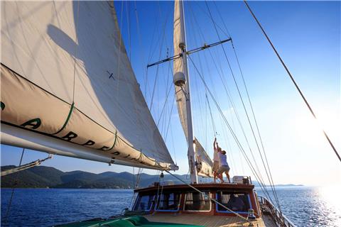 This is a family-run yacht that takes enormous pride in presenting a flawless yacht to guests - their livelihoods depend on it. They are also obsessed with winching the sails at every occasion, to give visitors an authentic sailing experience.