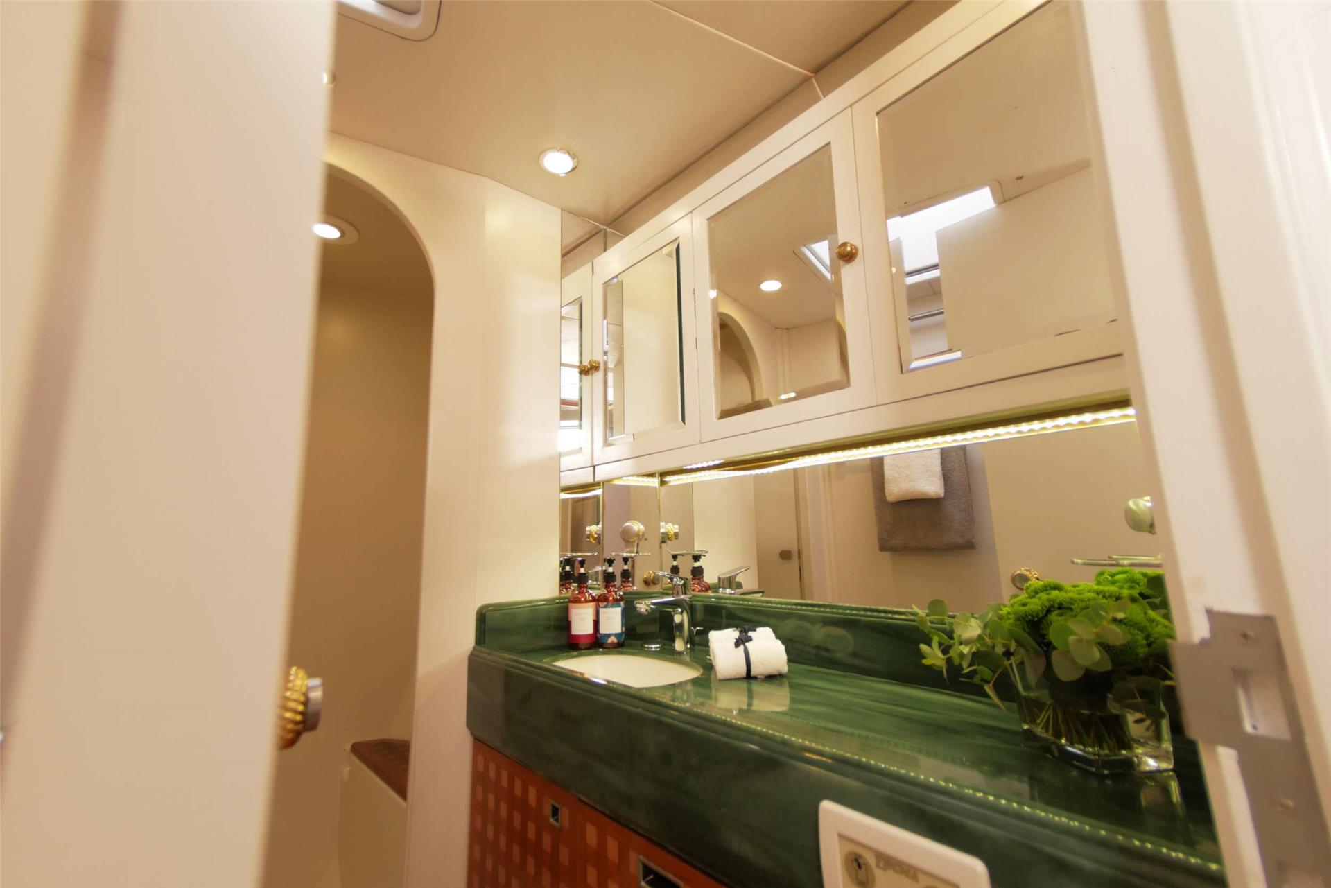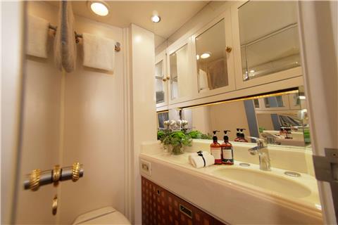 All cabins are en-suite and have a double bed, plenty of wardrobe space and a skylight for plenty of natural illumination. The Master en-suite has a bathtub and shower, plus a vanity and head. The other en-suite bathrooms all feature a vanity, head and shower.