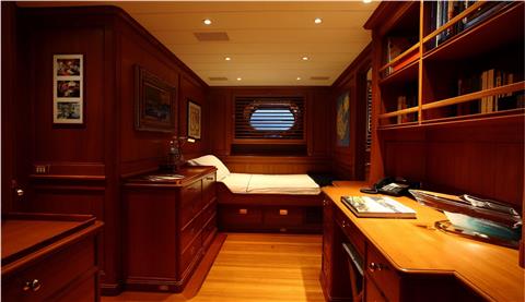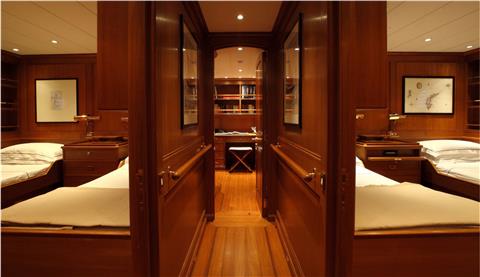 The master cabin: 2 separate double beds, French size (130 cm each), office area, spacious bathroom