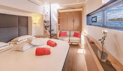 The Master cabin is also offering a TV / Bluetooth – HDMI cable and a safe