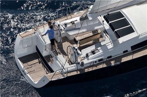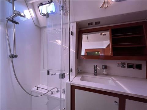 -Saloon with A/C, open galley, retractable bar, dining area for 4 Guests